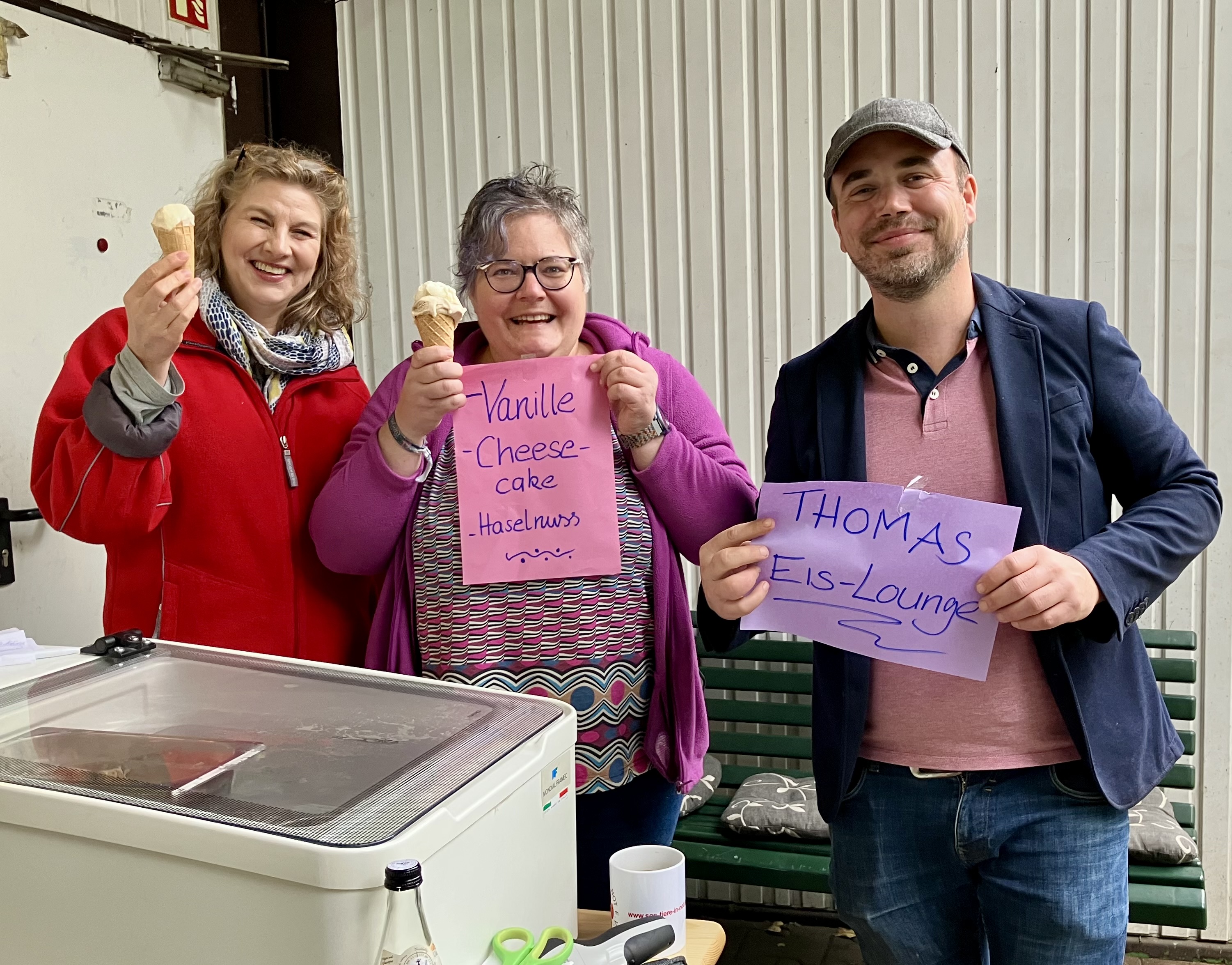 Unser Dank gilt außerdem der Bäckerei und Konditorei Hezel aus Erlangen, die sich spontan entschieden hatte, uns die Brötchen für unsere Feier zu spenden, Thomas Meyer von Meyers Eiswägerla (derzeit Thomas Eislounge), der seine Zeit und sein Eis kostenlos zur Verfügung stellte, um unsere Gäste zu verwöhnen und all den KuchenbäckerInnen für die köstlichen Backwaren, mit denen wir uns und unseren Gästen den Nachmittag versüßen durften. Es ist so schön, dass es so viele tolle, engagierte und spendable Menschen gibt. DANKE!