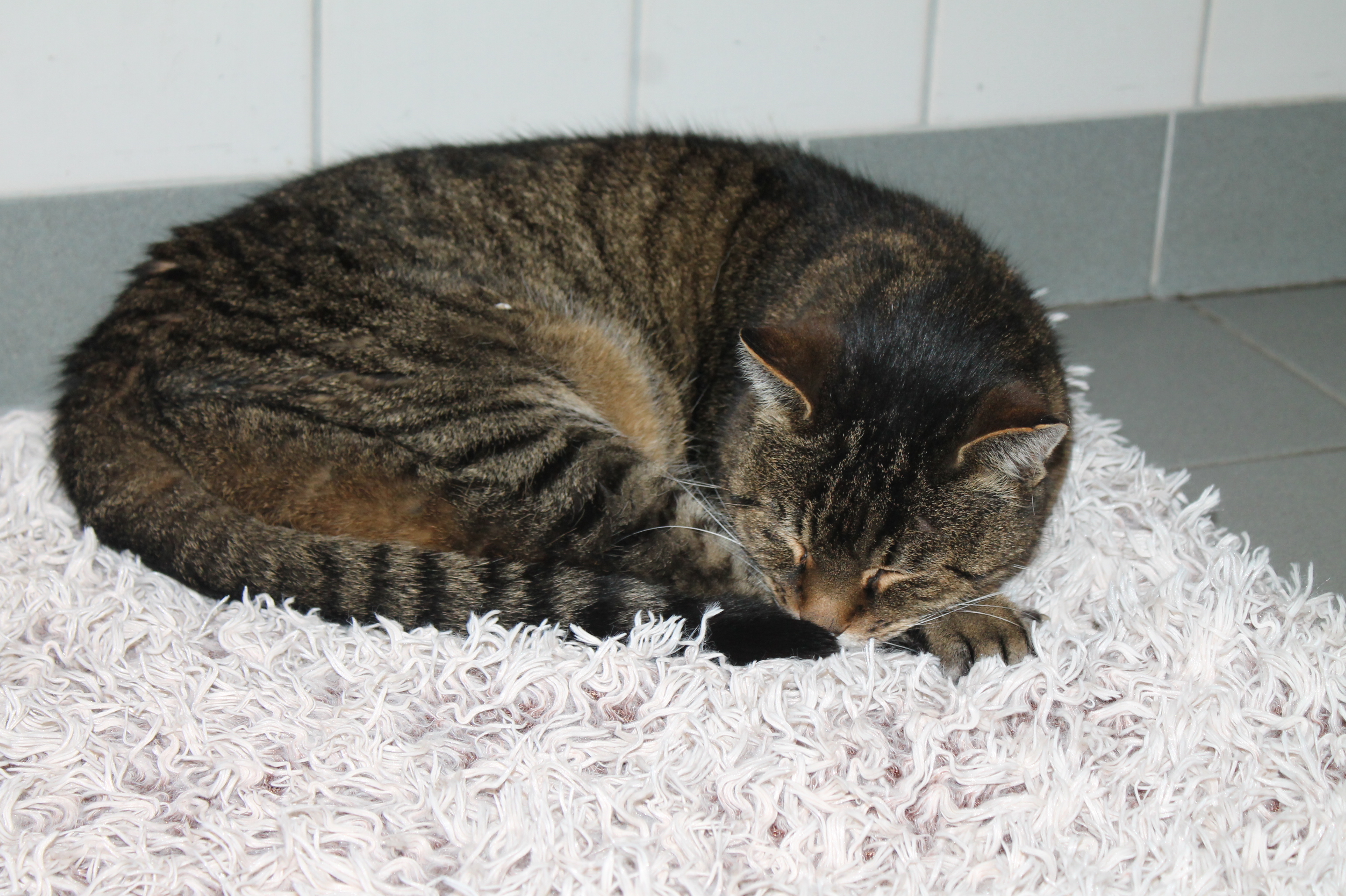 getigert/weiß, weiblich; gefunden vor dem Tierheim Tätowiert aber nicht registriert - ein Filmchen unter mehr