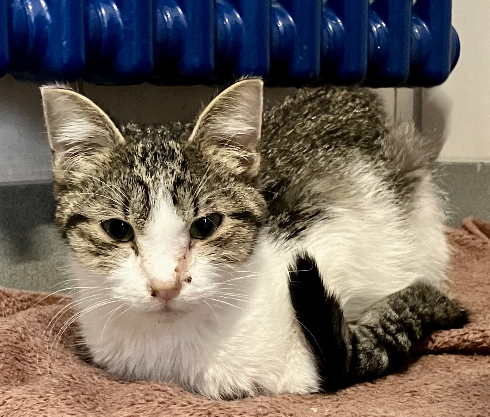Marty stand auf des Messers Schneide, als er völlig abgemagert gefunden wurde. Mittlerweile frisst er gut und erholt sich zusehens. Er ist verträglich mit anderen Katzen.