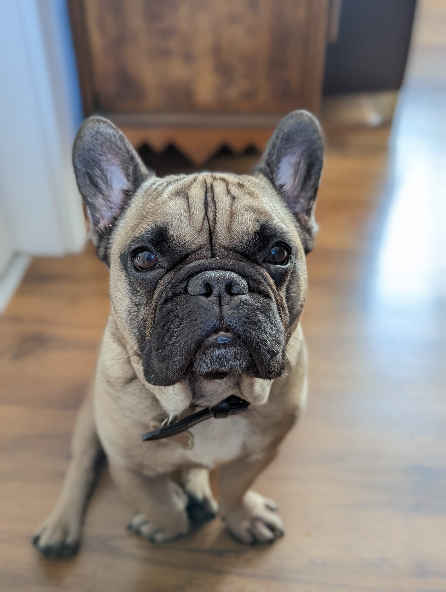 Er ist eine reinrassige französische Bulldogge, geboren am 20.05.2016, und seit der zwölften Lebenswoche Teil unserer Familie. Romeo ist etwa 15 kg schwer, ein kleiner Dickkopf mit einem großen Herzen - eben ganz der typische Bully.