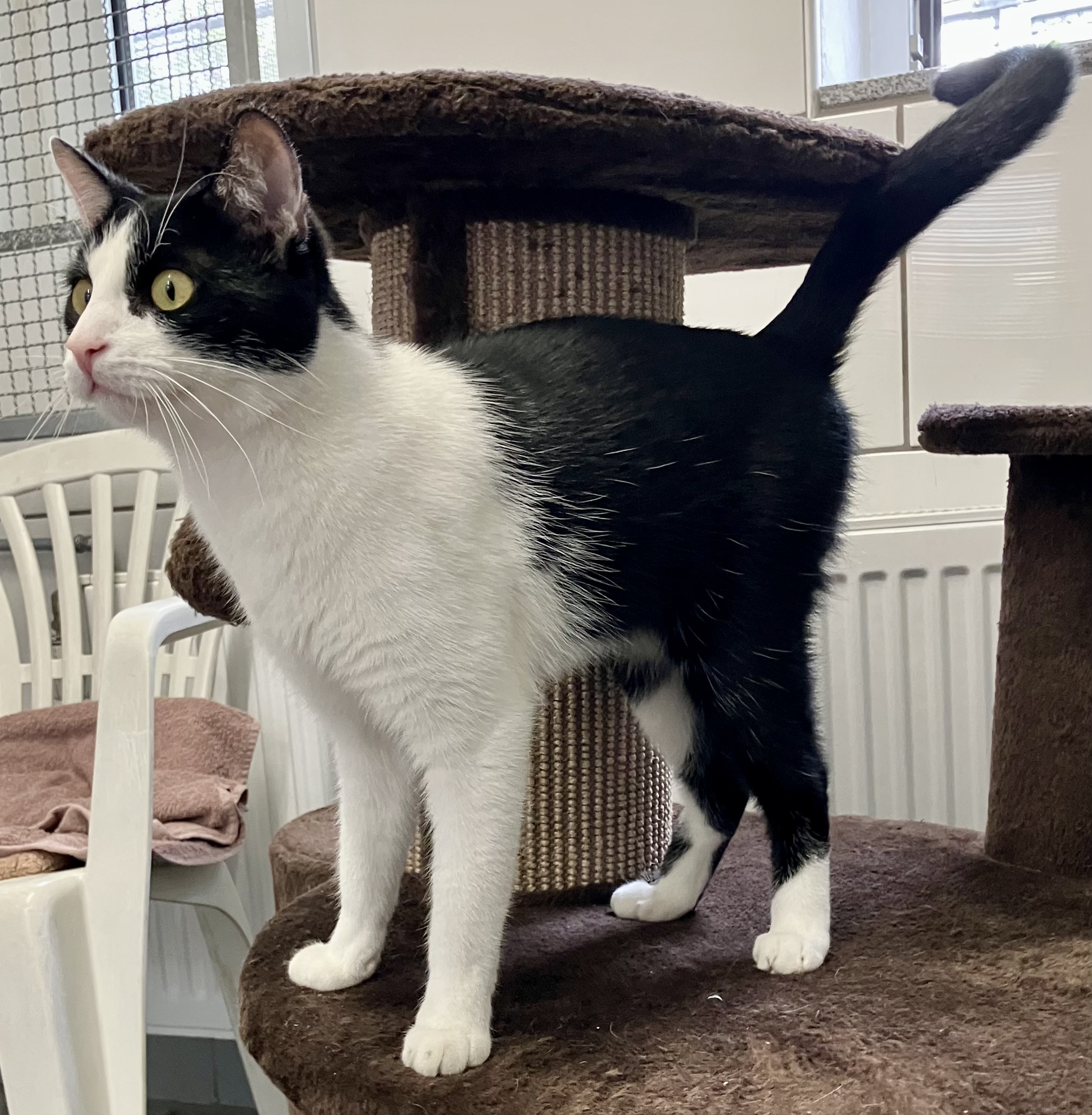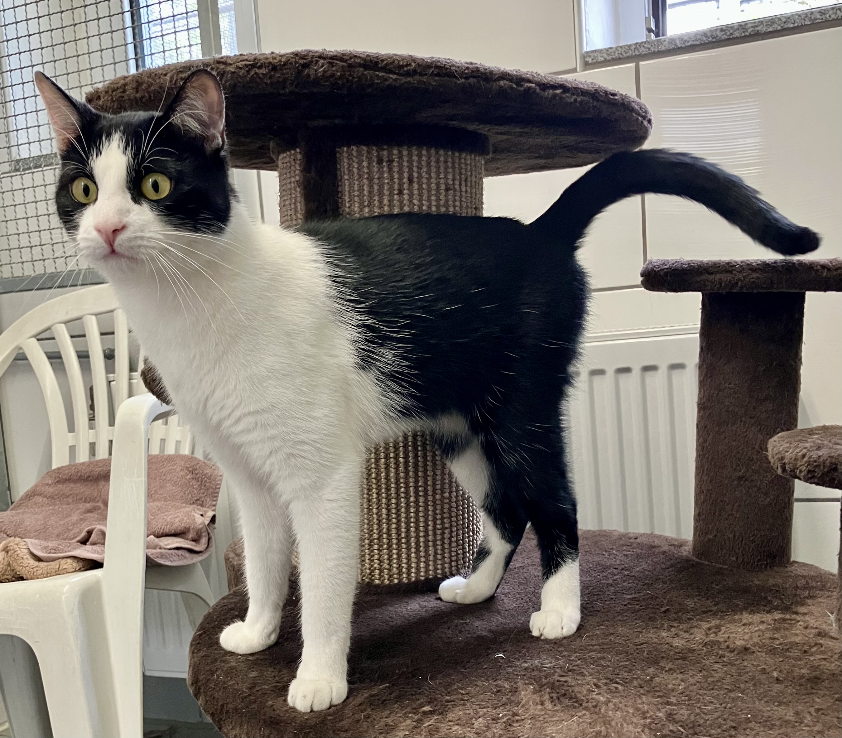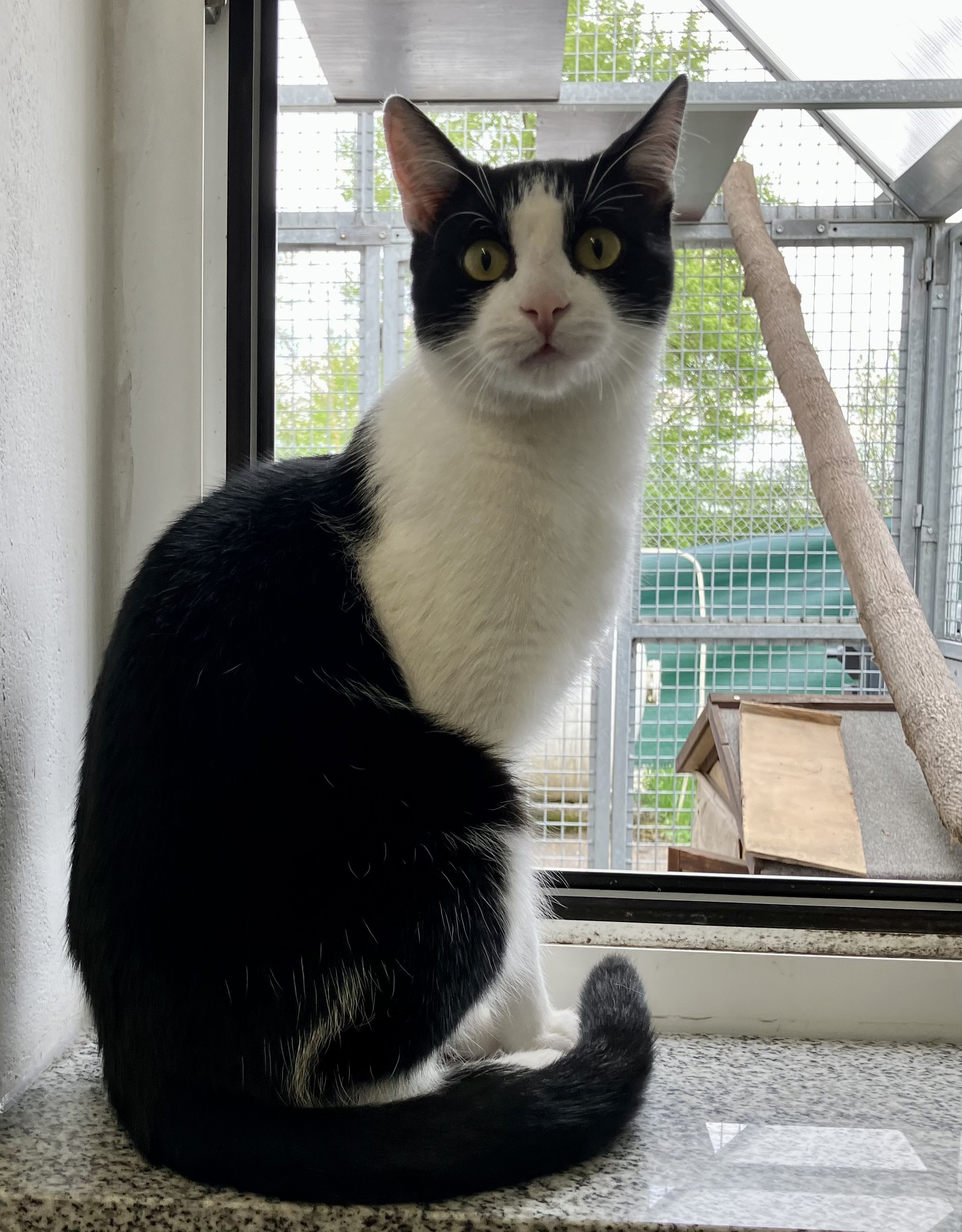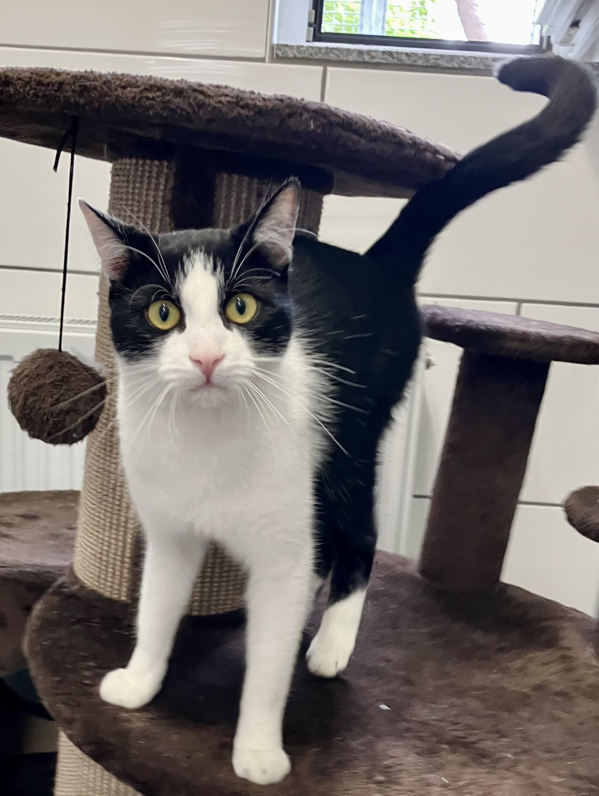 Anfänglich etwas schüchtern, dann sehr verschmust. Kuschelt gerne. Verträglich mit anderen Katzen.
